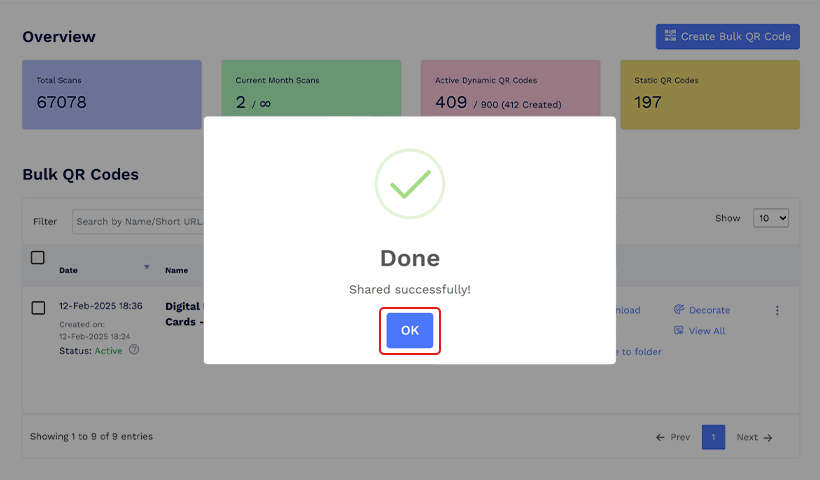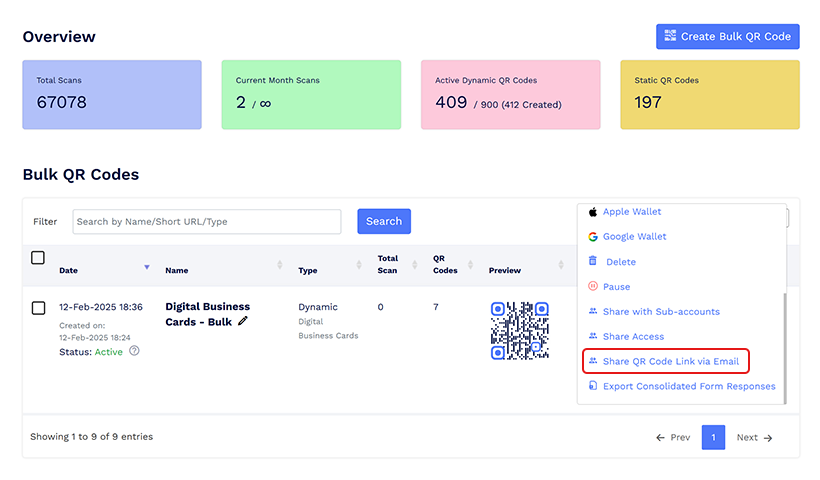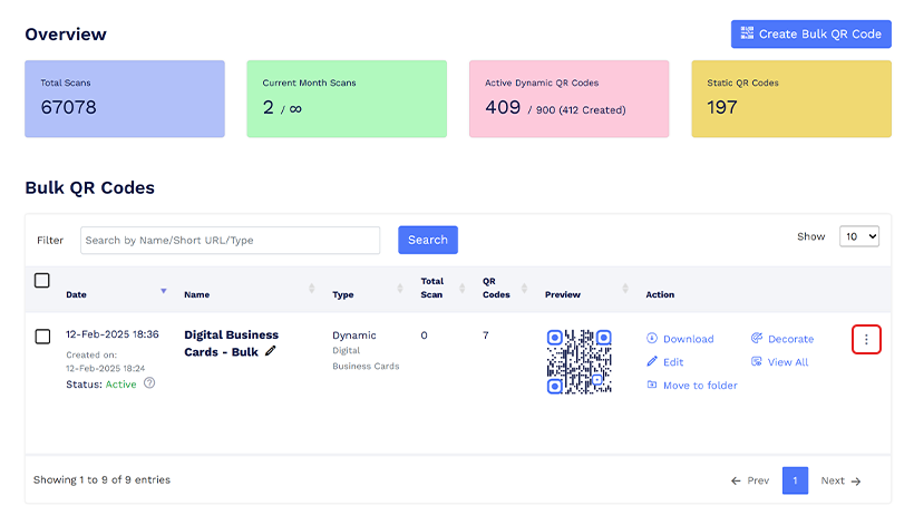 Step 1: Visit the QR Codes Bulk List and identify the bulk.