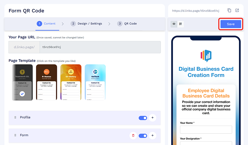 Note: If you want to update the design, fields, or structure of your digital business card, first update the card template. Then update the form to include the new fields and map them correctly. Once you save these changes, they will apply to all existing and future digital business cards created through that form.