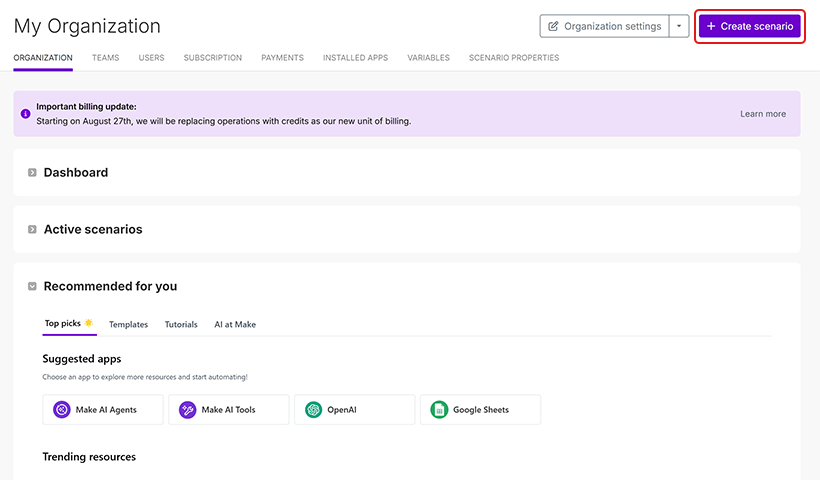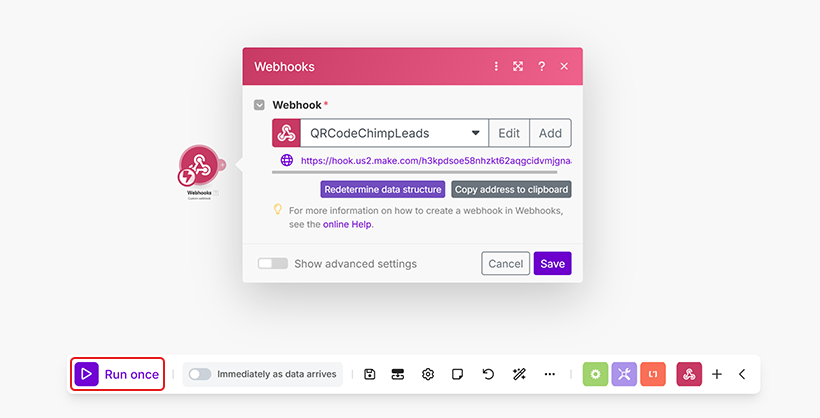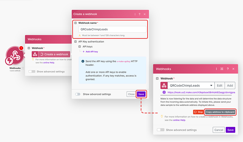Follow these four quick moves, and you’ll master how to connect Make webhooks with QRCodeChimp.