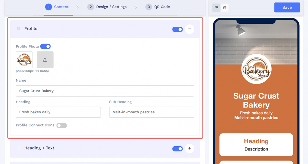 3. Head to the Profile section, and add your profile photo, name, heading, and description.