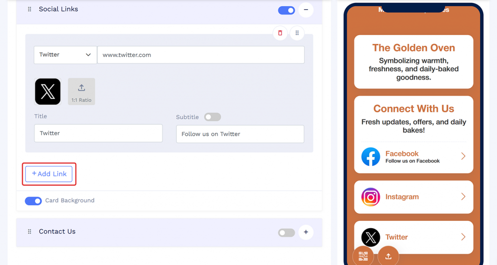 5. Head to the Social Links section, and add the social media profiles you want to add. Click on ‘Add Link’ to add more social links.