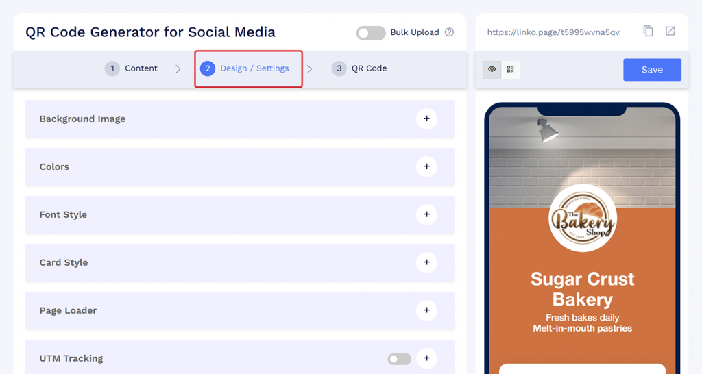14. Under Customize QR Code, customize your social media QR code using shapes, colors, stickers, and your brand logo.
