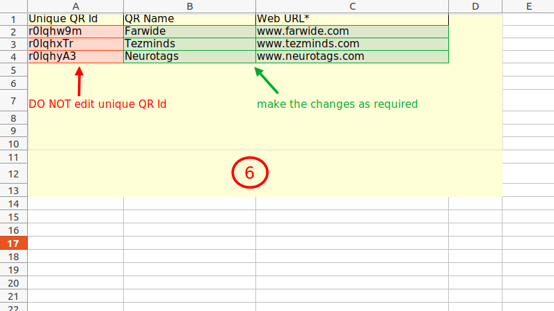 When you use the bulk QR codes feature, you’ll get a sample file to download. Check the file to get an idea about the format and how to enter the data.