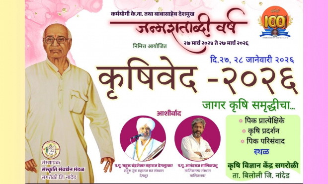 Greetings from Sanskriti Samvardhan Mandal, a village-based voluntary organization established in 1959 with a view to educate and empower the deprived rural community. Considering the contribution in the agriculture sector, the Government of India has awarded us Krishi Vigyan Kendra at Sagroli to run for the farming community in the 8 rain fed taluka in Nanded district.  As a part of its extension program, KrushiVed (Technology Mahotsav) has been successfully organized by Krishi Vigyan Kendra Sagroli, Nanded in every year which includes Live / Field Demonstrations of the technologies by various Organizations, Companies, FPO’s and Exhibition’s of Agriculture Equipment’s, Machineries, Advance Tecnologies Agricultural Inputs etc. We are inviting Agricultural Scientists, Government Officials, Agricultural Experts, Pragrossive Farmers to guide the farmers in the event.