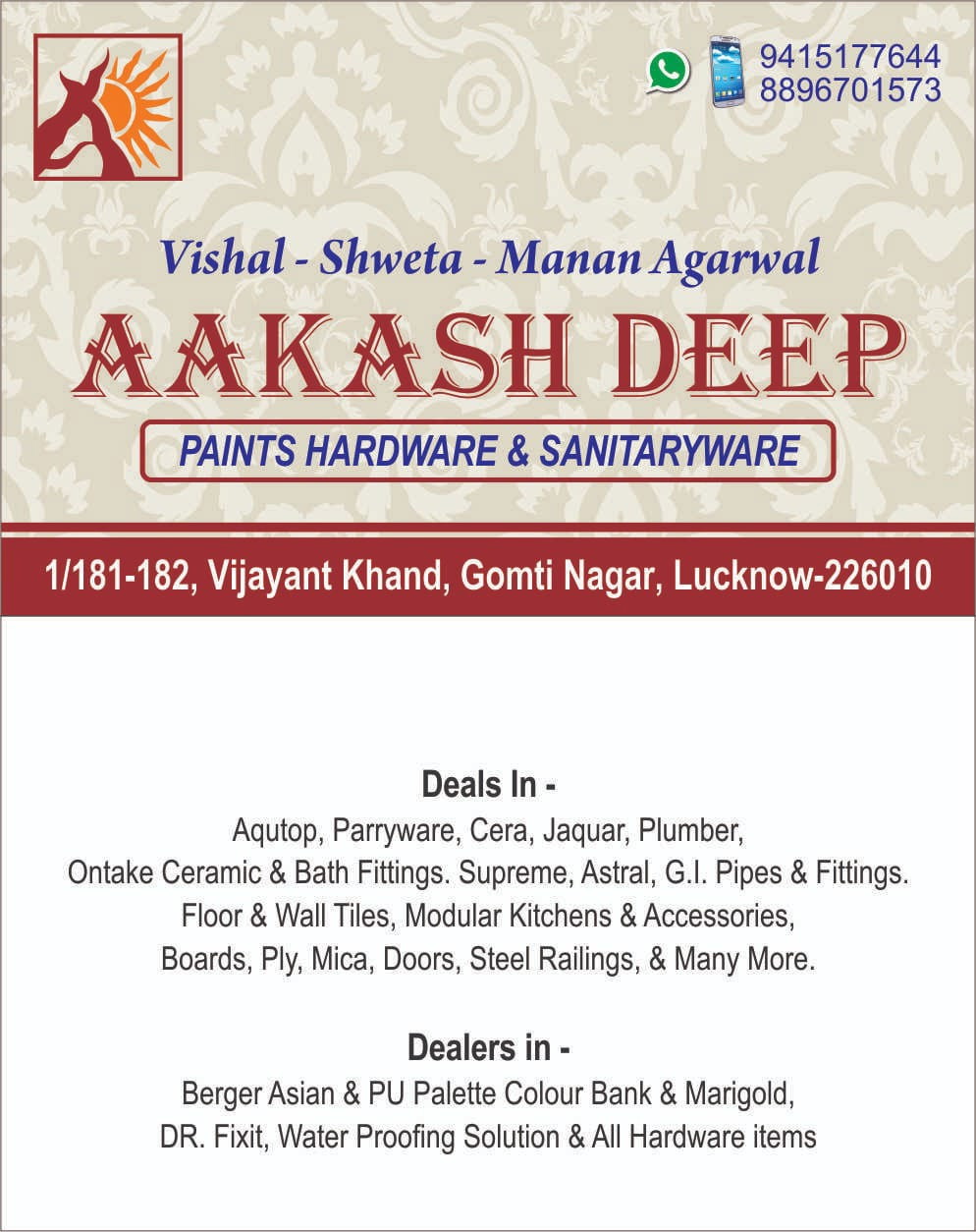 1/181-182, AAKASH DEEP BUILDING VIJAYANT KHAND GOMTI NAGAR LUCKNOW