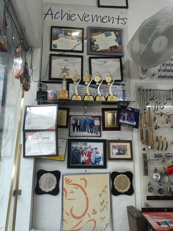 WE DEAL IN ALL TYPE OF HOUSE BUILDING METERIALS LIKE PAINT - BERGER AND ASIAN , POLISH ITEMS PIPE FITTINGS ETC, SANITARY PRODUCTS - PARRYWARE CERA JAQUARE PLUMBER , ALL SPARE PARTS HARDWARE - PLY,BOARDS,MICA,HANDLES,LOCKS ETC.