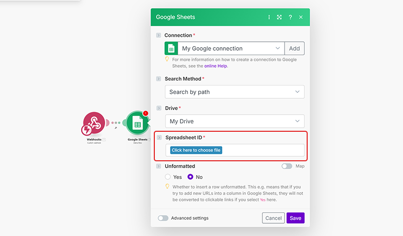 (This is applicable if your sheet has headers.) - Carefully map each field from your webhook data to the corresponding columns in your sheet.